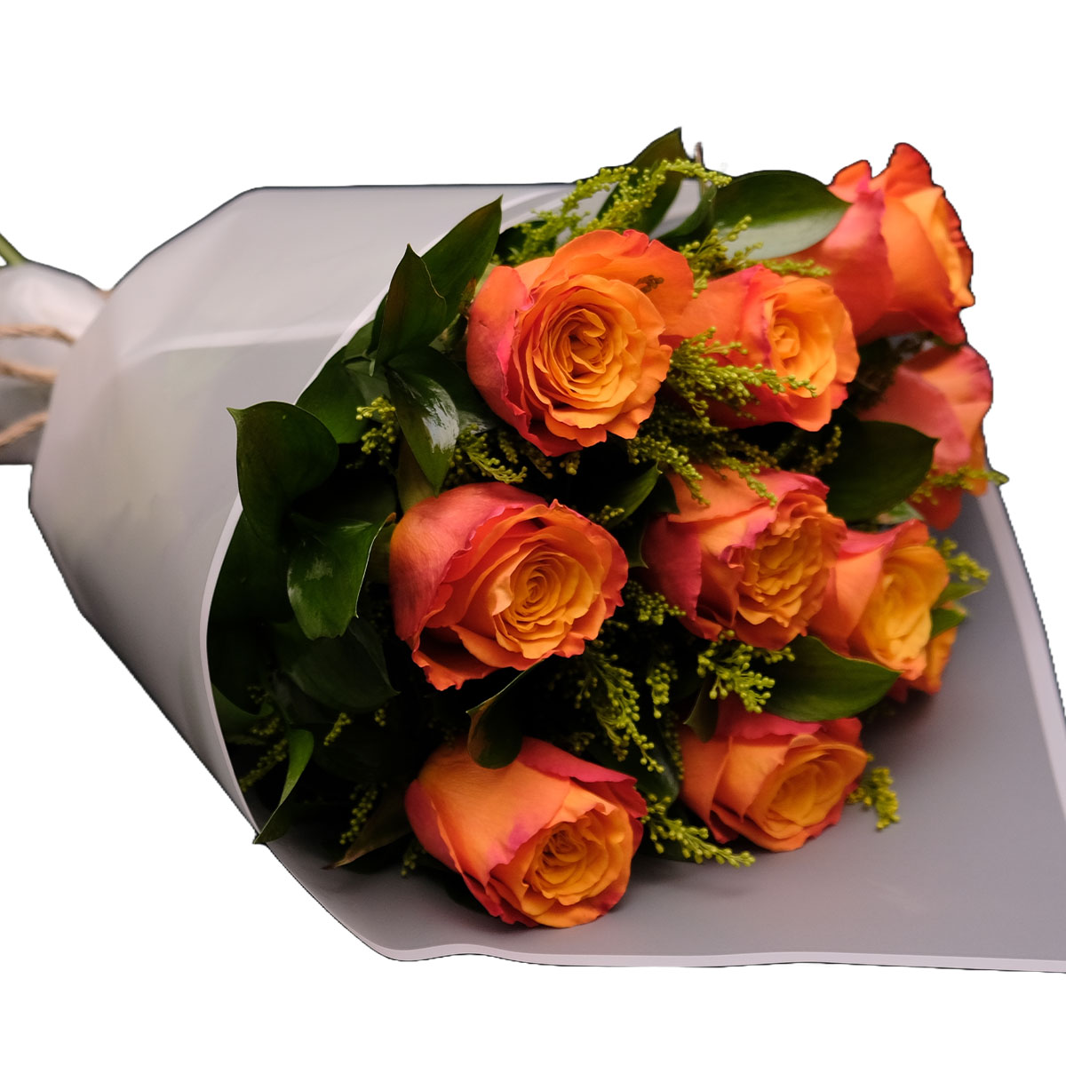 This vibrant bouquet of orange roses is a burst of sunshine, perfect for brightening someone's day. The warm hues evoke feelings of joy, enthusiasm, and passion. A delightful gift for any occasion.