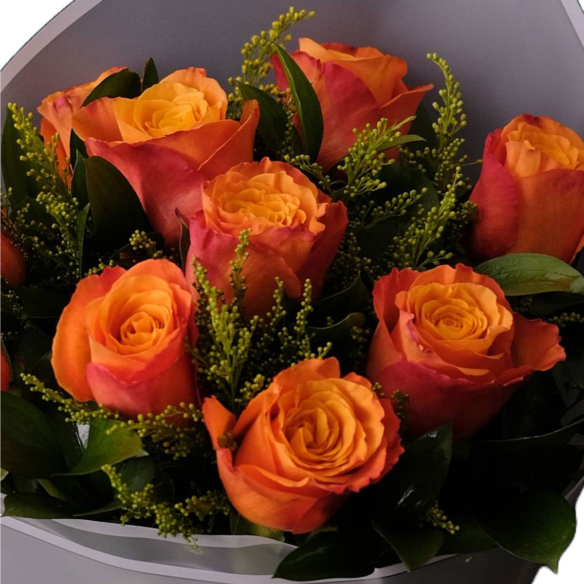 This vibrant bouquet of orange roses is a burst of sunshine, perfect for brightening someone's day. The warm hues evoke feelings of joy, enthusiasm, and passion. A delightful gift for any occasion.