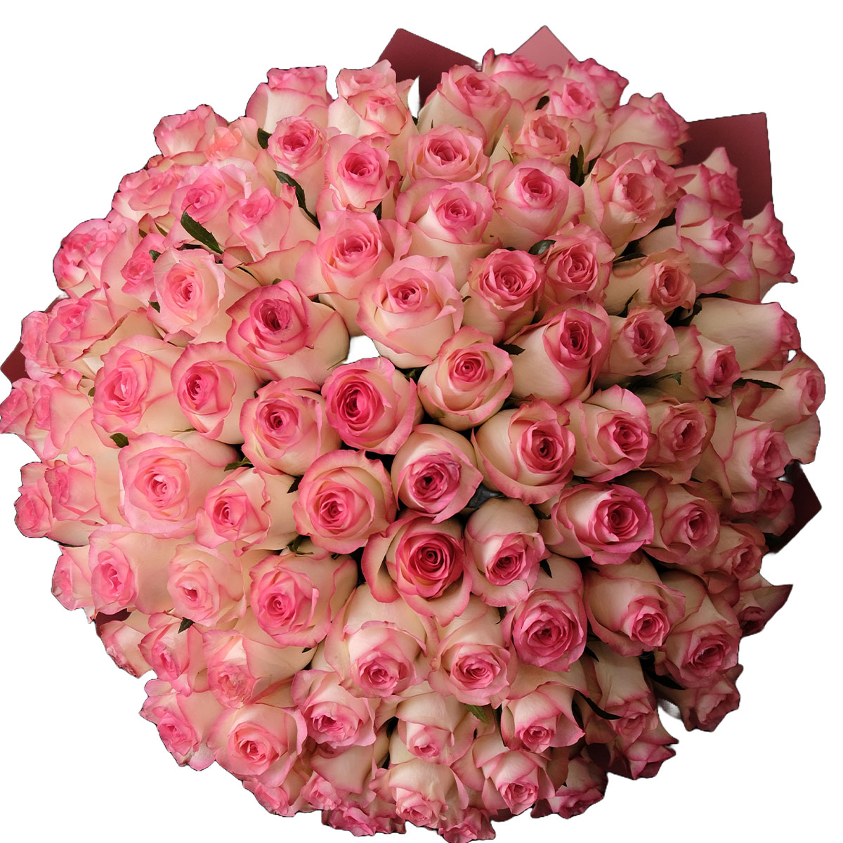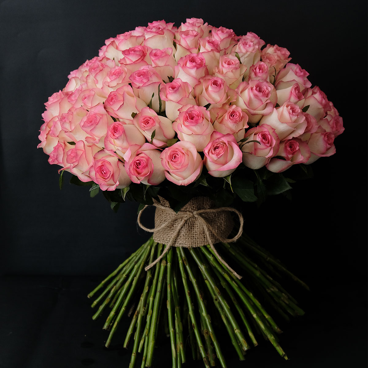 A breathtaking display of 101 roses in shades of pink and white creates a truly unforgettable statement. This magnificent bouquet is a symbol of pure love and devotion, perfect for expressing your deepest emotions. Simple and elegant, this arrangement is sure to leave a lasting impression.